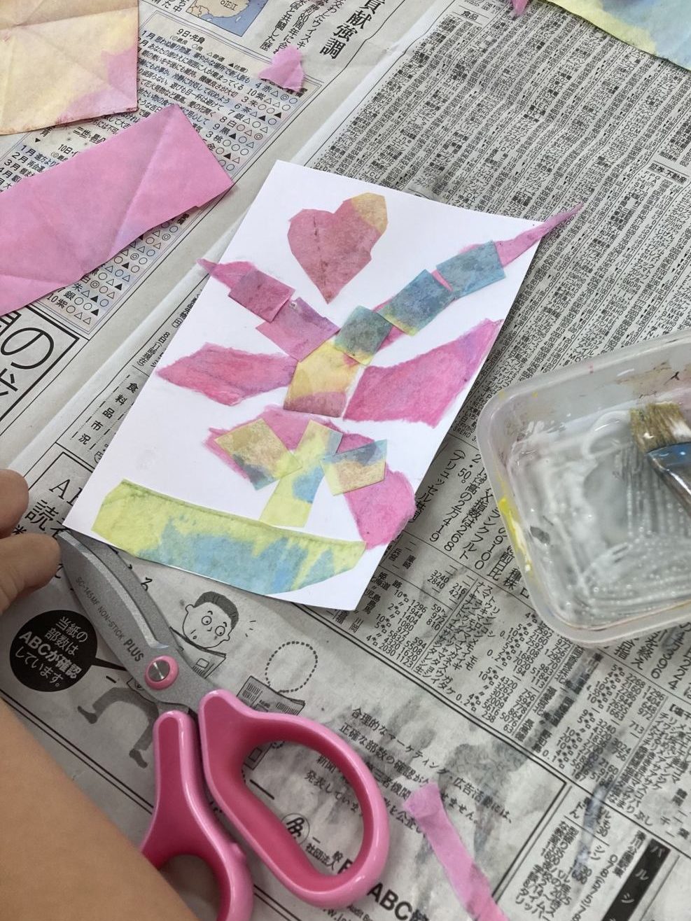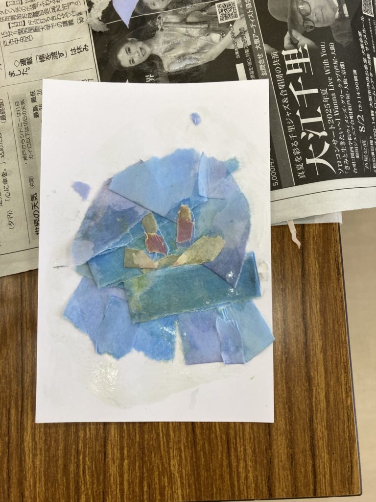 うちわ作りと貼り絵をして楽しみました。