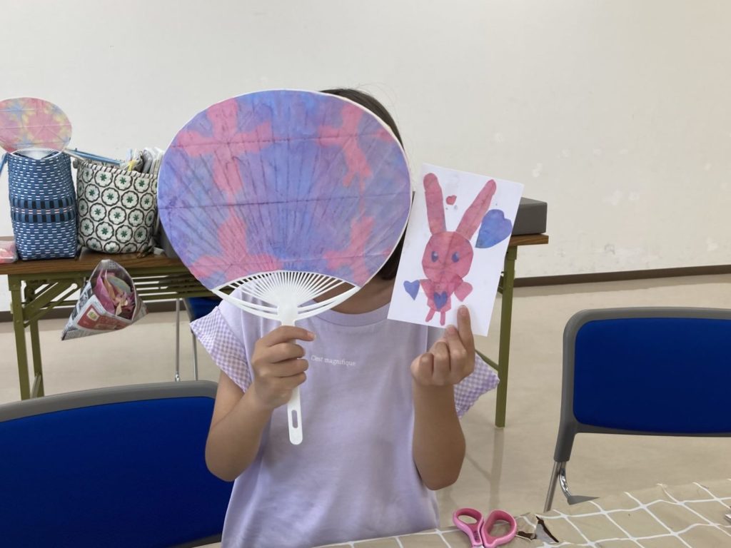 「染め紙でうちわを作ろう」