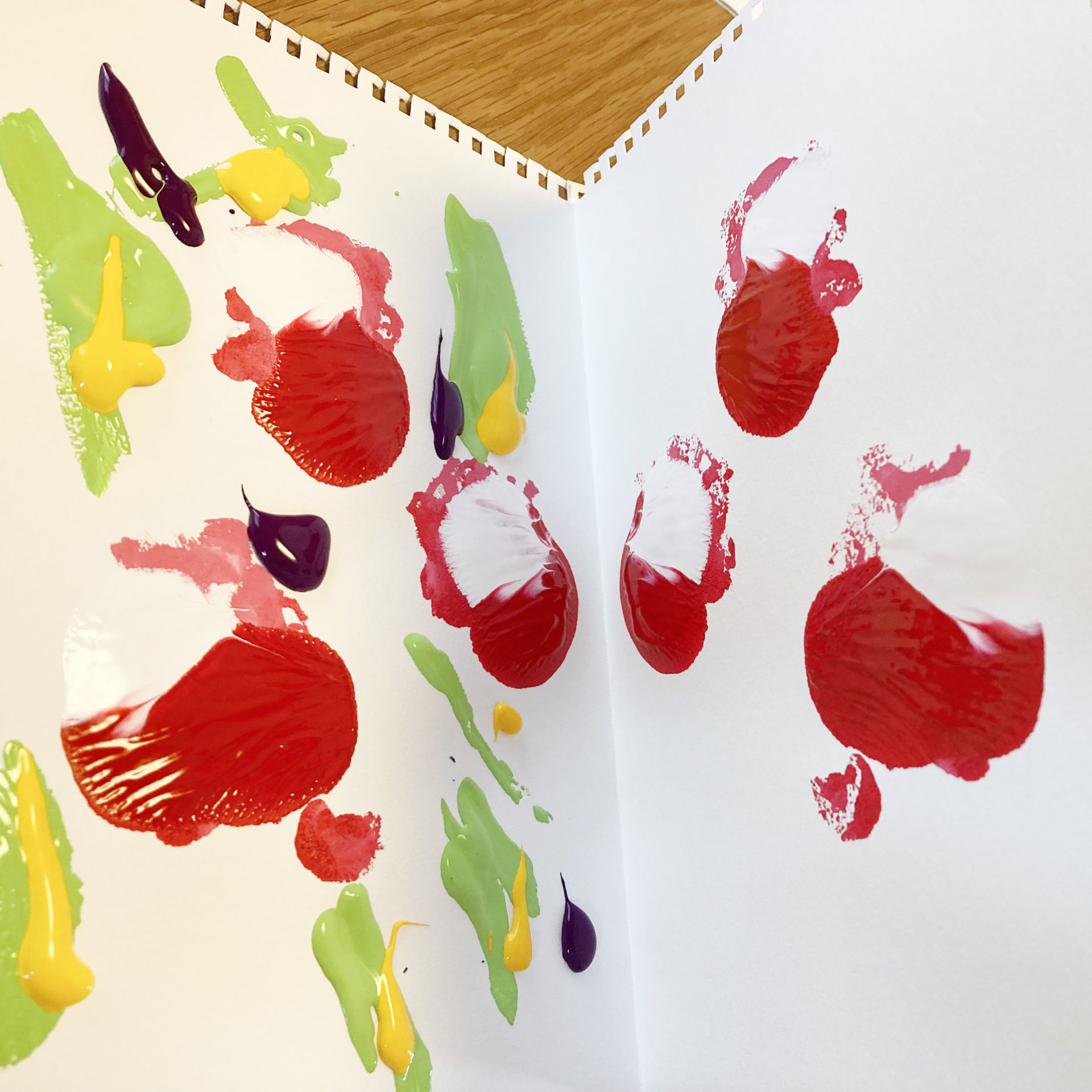 絵の具のチューブから直接色をつけるので、小さいお子様でも簡単に色遊びができます。 どんな模様ができるかワクワク。偶然できる色合わせが楽しい!