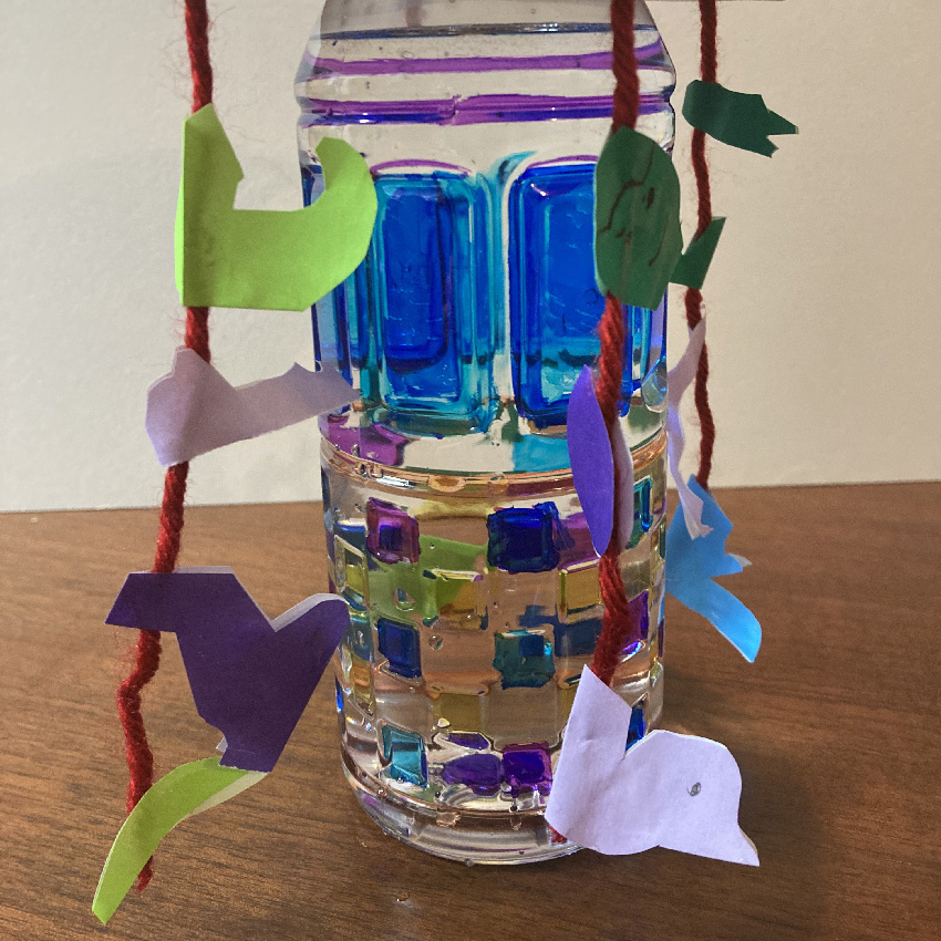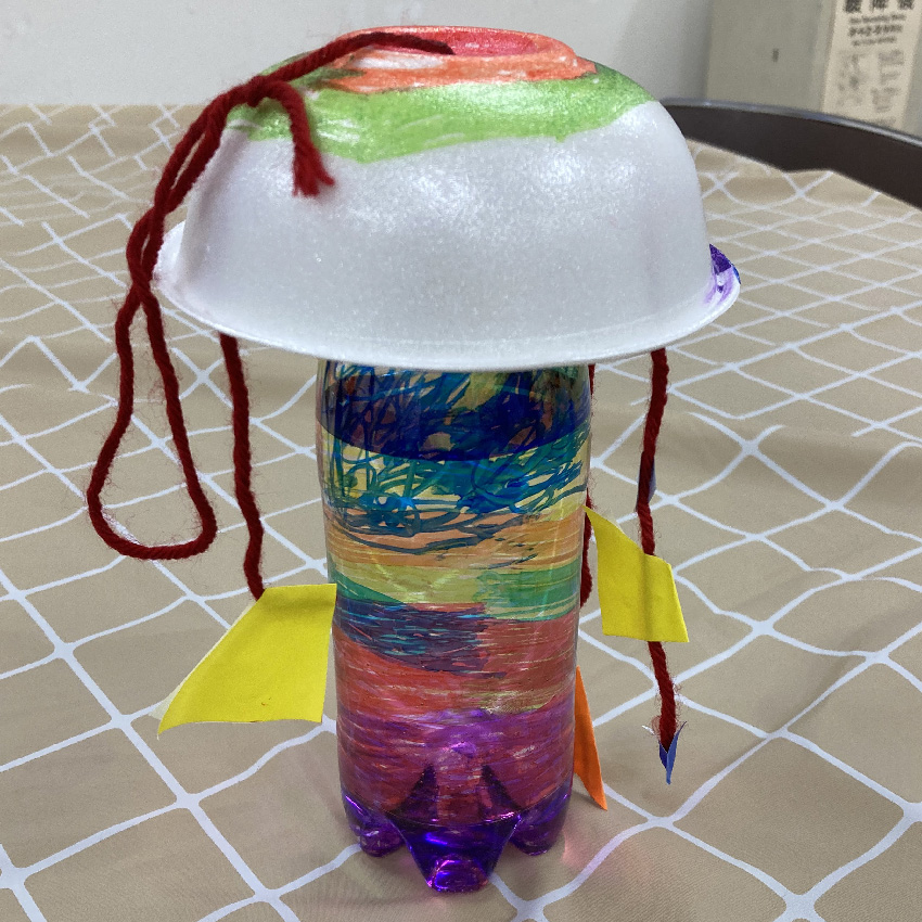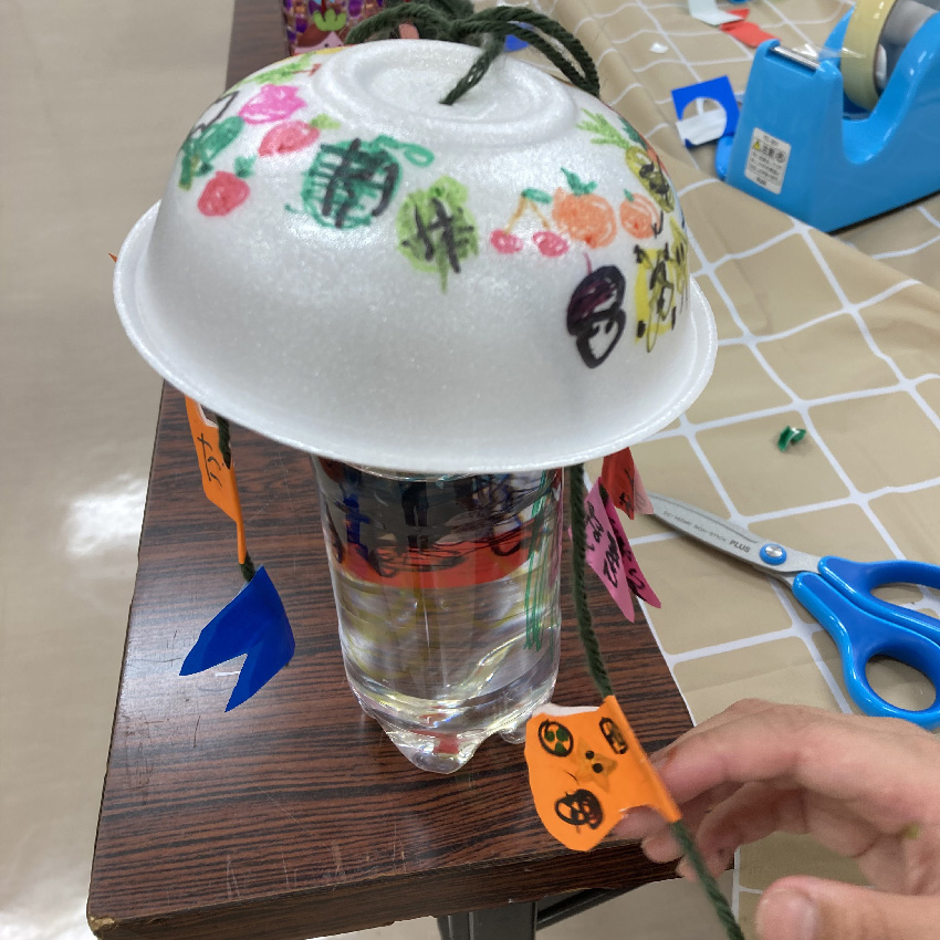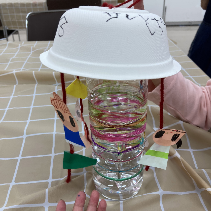 ペットボトルと組み合わせてクルクル回したら、まるでメリーゴーランドか吊るし雛みたいd(^^)