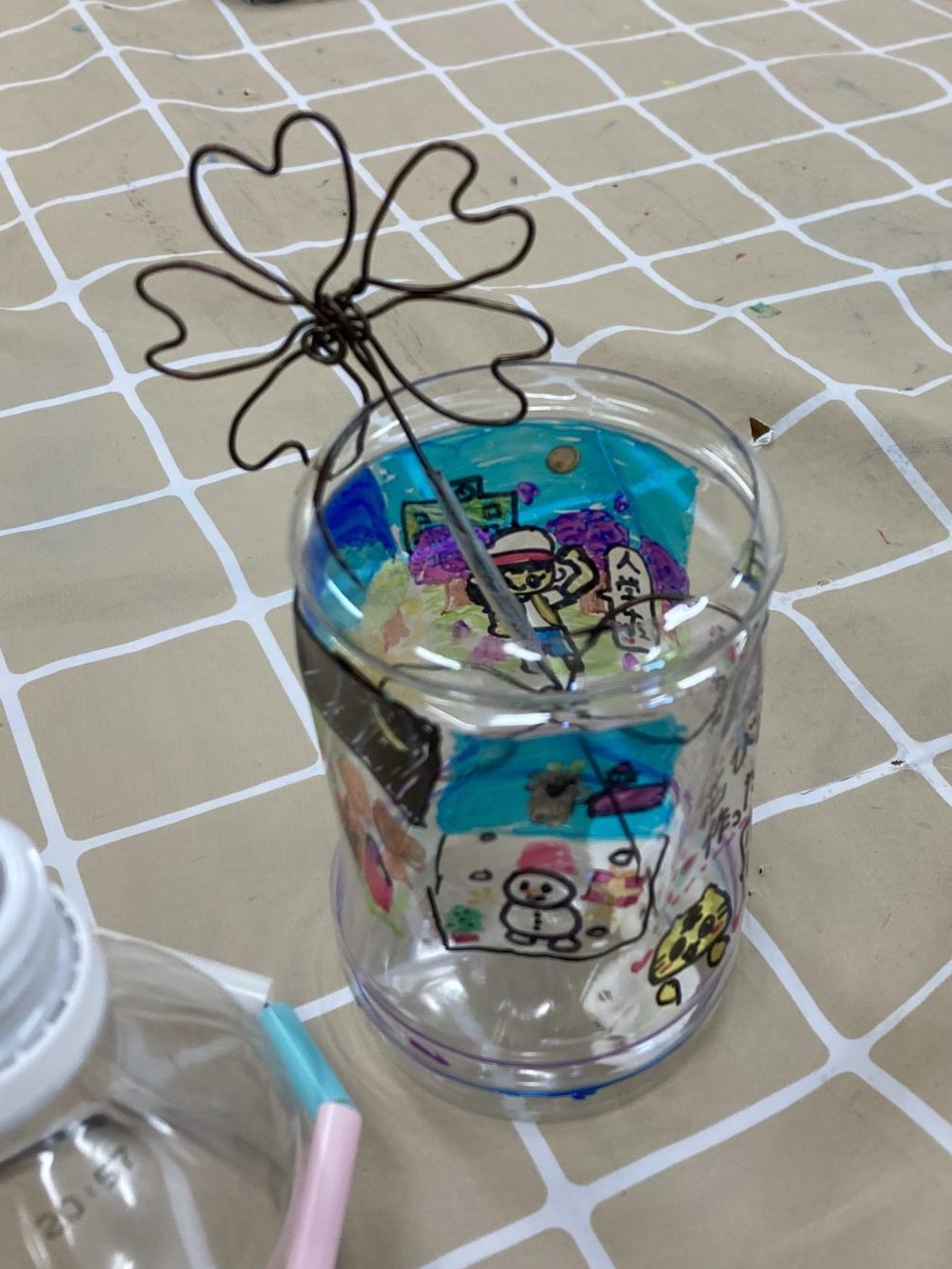 どんな形にも変形する針金を使って飾り付けしました。
