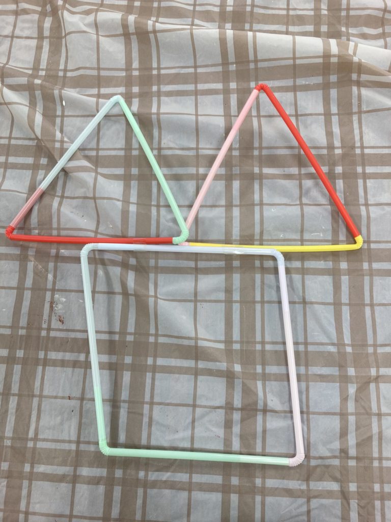 三角や四角だけでなく五角や星型まで、組み合わせでいろいろな形が生まれました。