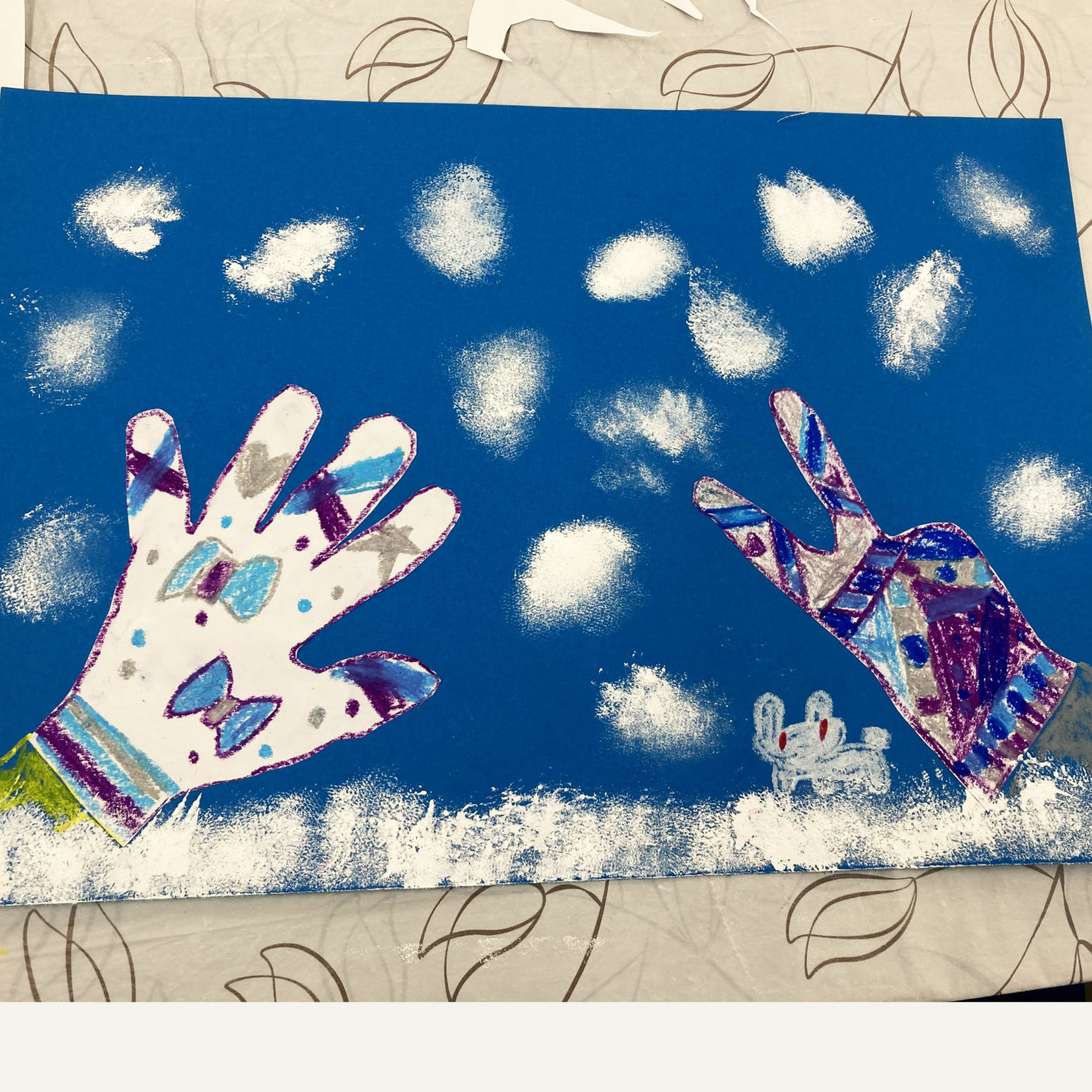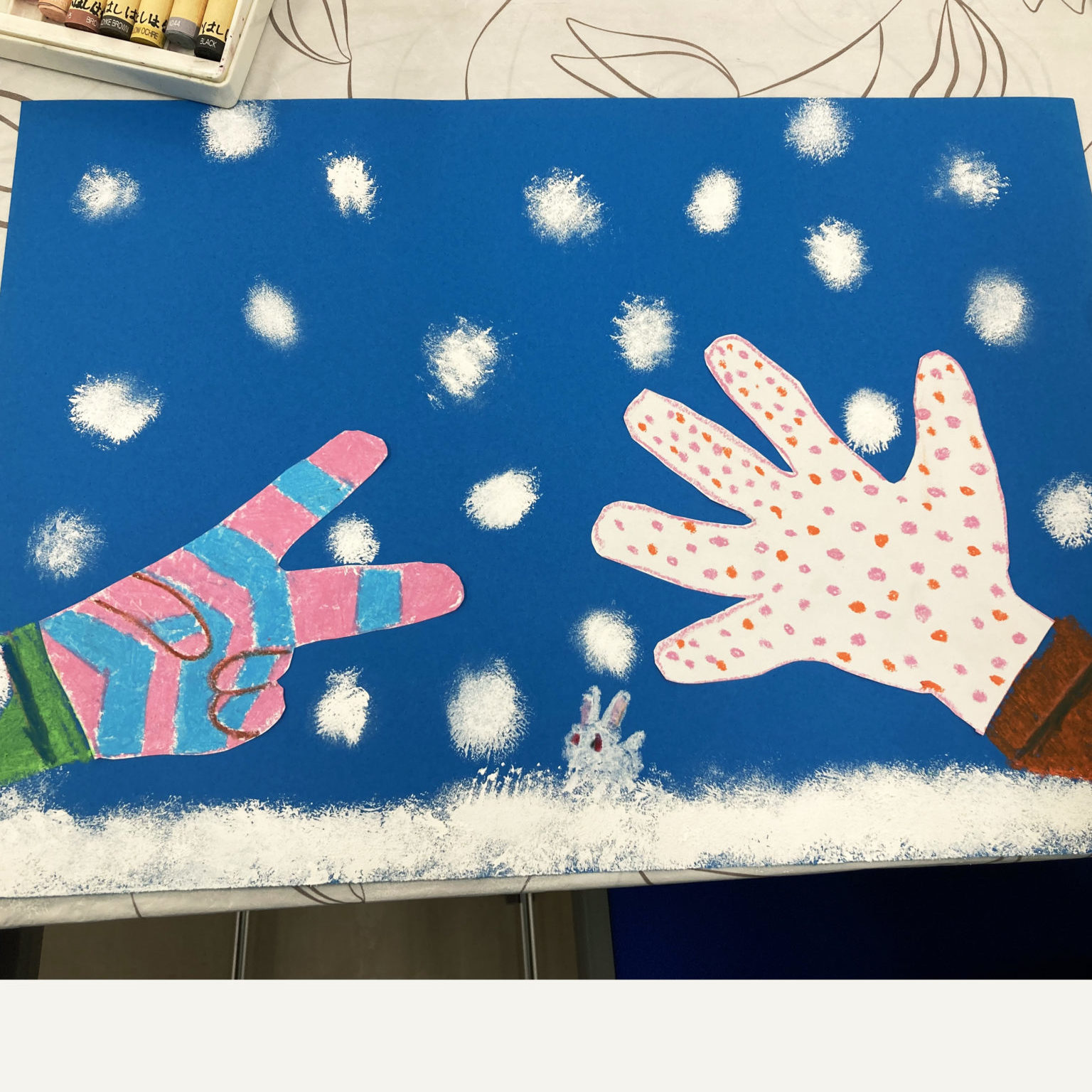 お気に入りの手ぶくろで雪の中でじゃんけんしているもの、
