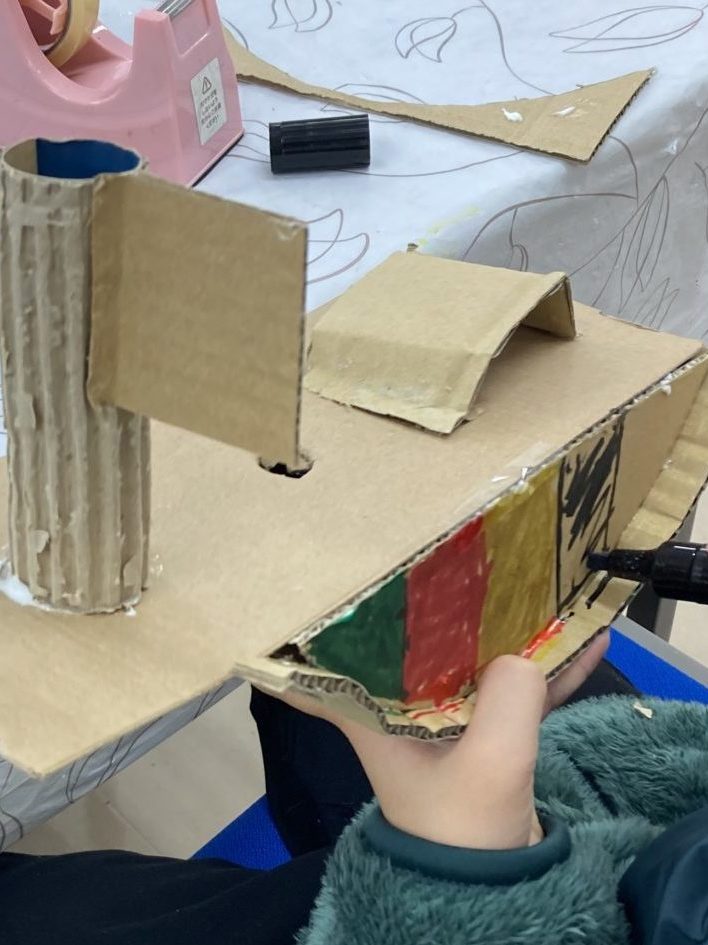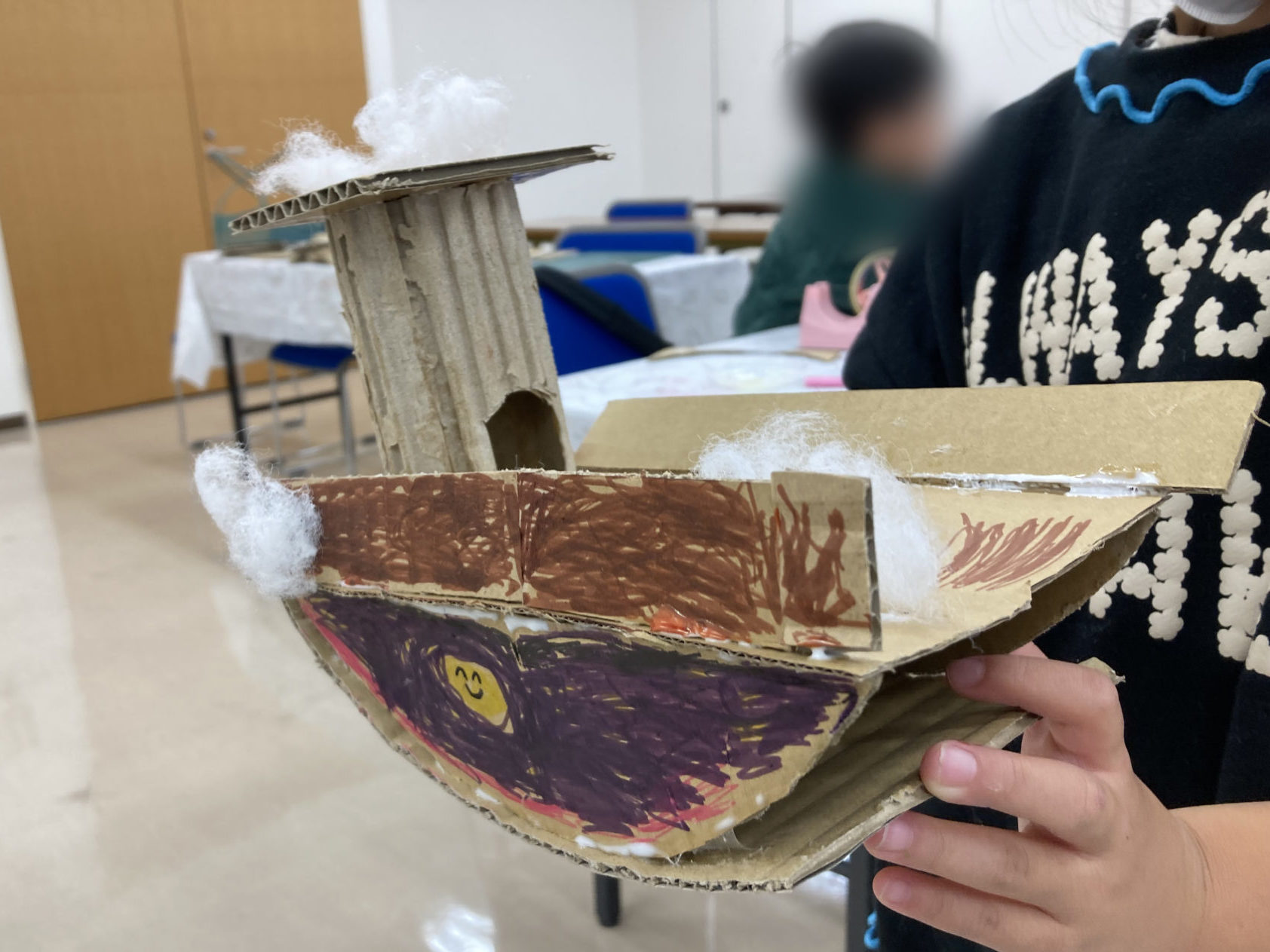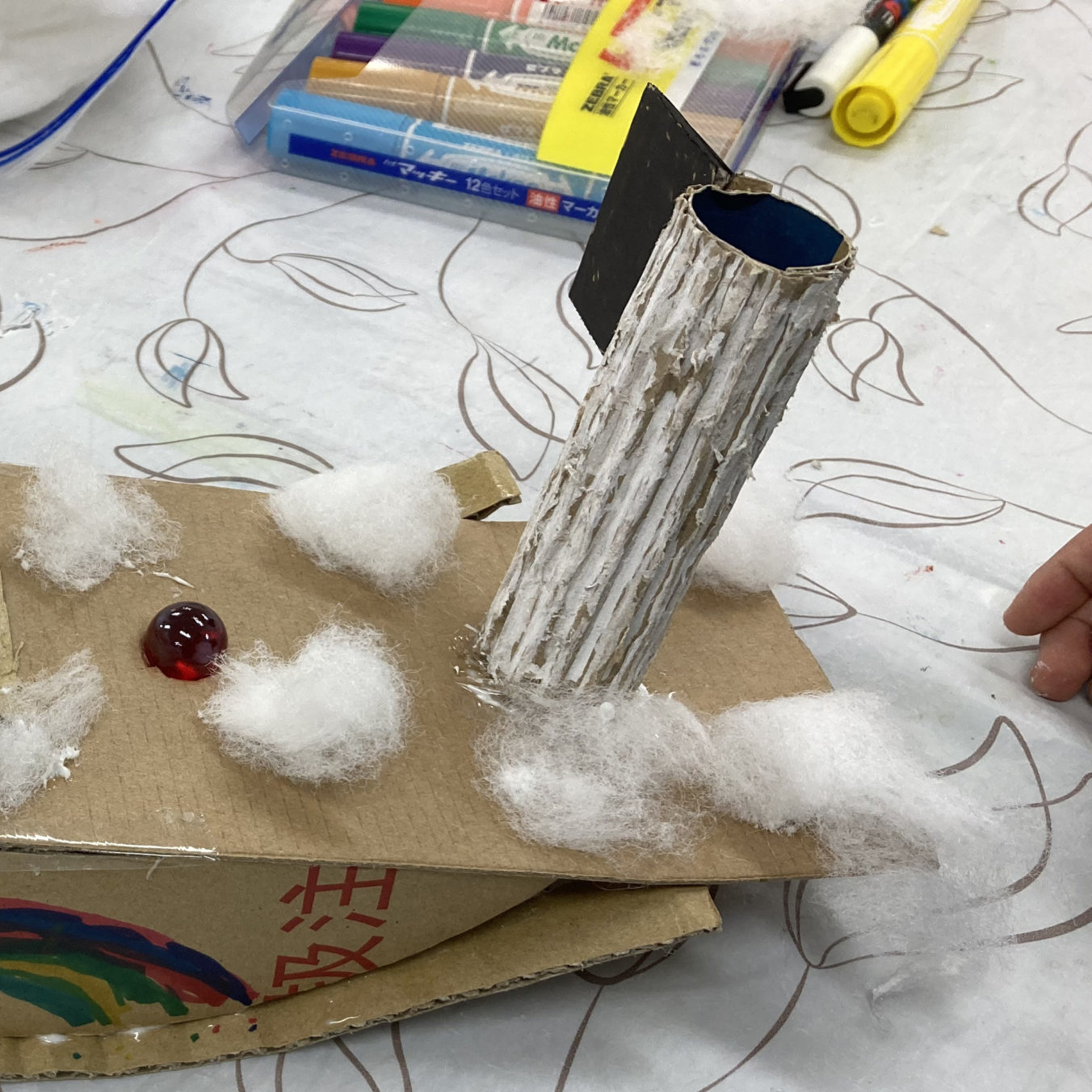 丸めてカーブを作ったり、表の紙をはがしてでこぼこにしたり、ダンボールはいろんな使い方ができるので家でも試して作ってみてくださいね!
