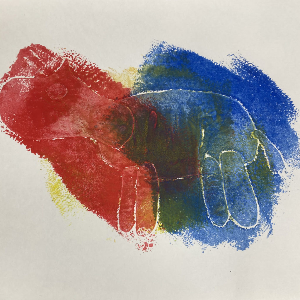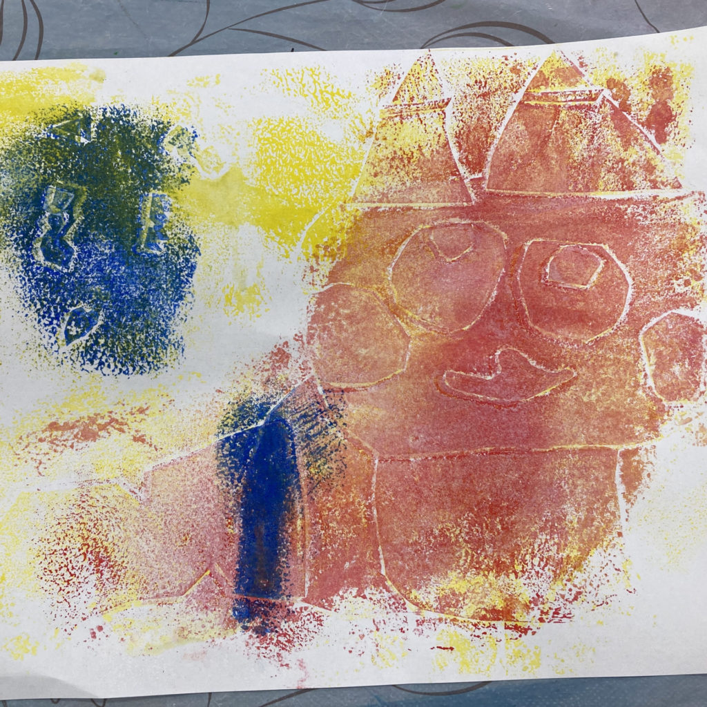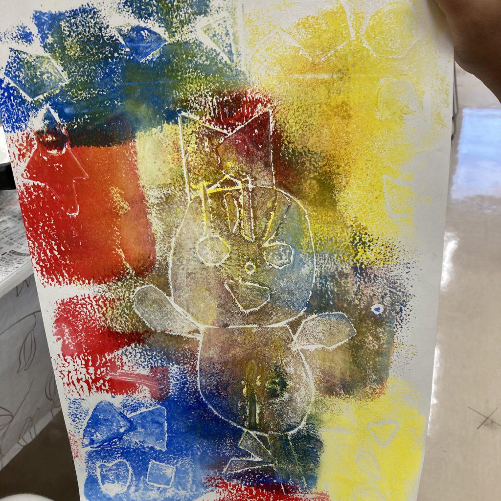 好きな動物や干支の馬などを描いて版画をして楽しみました。